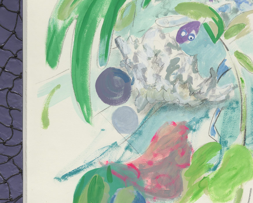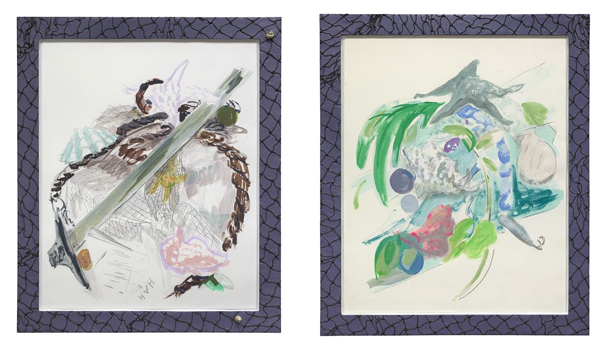 Untitled, 2021, Flashe, pencil and charcoal on paper, acrylic and ink on urethane resin, resin frames, Two parts, Framed: 43.25 x 36.25 x 3 inches and 45.5 x 38.125 x 2 inches (detail)