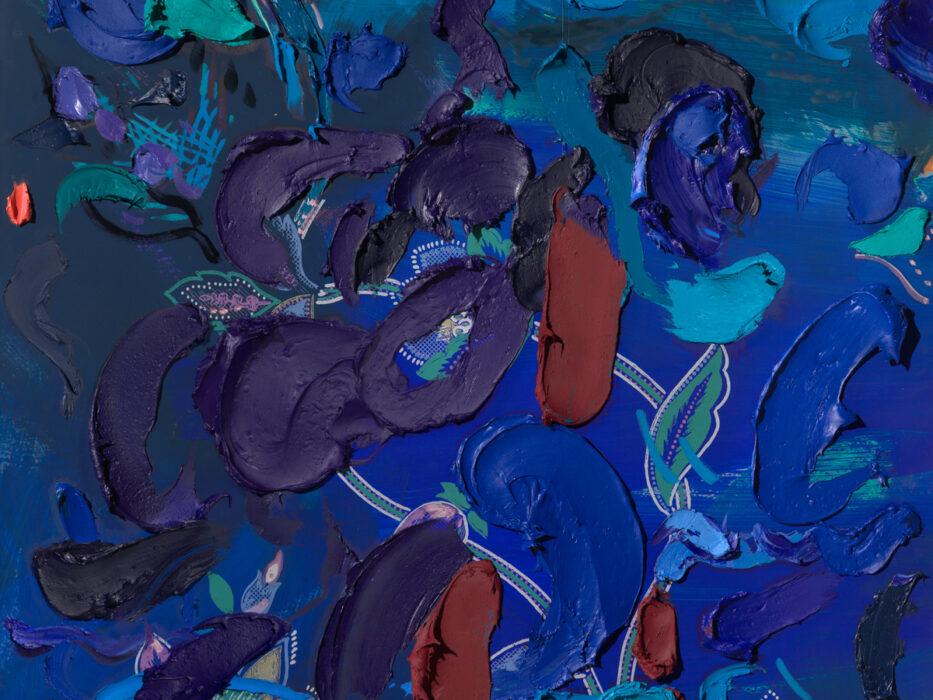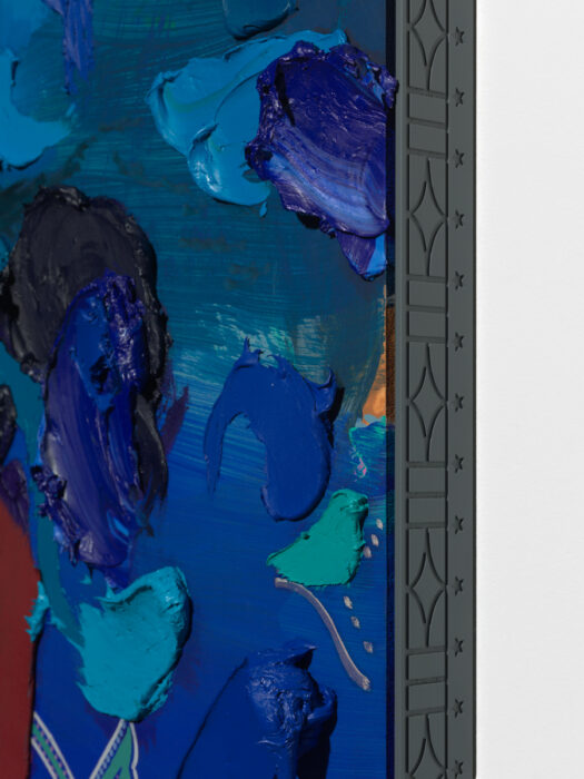 , 2023, Oil acrylic, Flashe and screen-printing ink on clay-coated wallpaper mounted to extruded polystyrene foam with wood fiber veneers, powder-coated aluminum, 82.25 x 35.75 in
