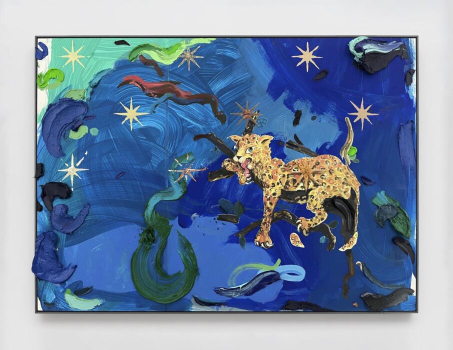 , 2024, Oil, Flashe and screenprinting ink on clay-coated wallpaper, mounted to extruded polystyrene foam with wood fiber veneers, polyurethane coated aluminum frame, 35 1/8 x 48 1/2 x 1-3/4 in