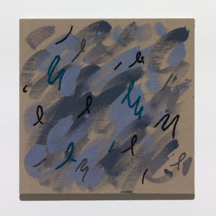 Untitled, 2012, Flashe and yarn on linen, 24 x 24 inches (detail)